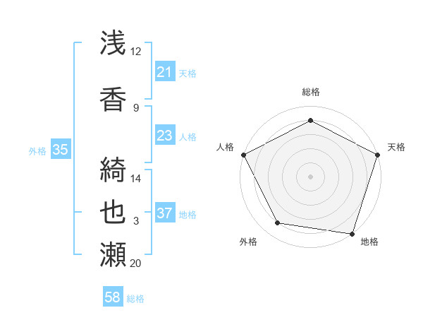 浅香 綺也瀬さんの総格は58画の4点!