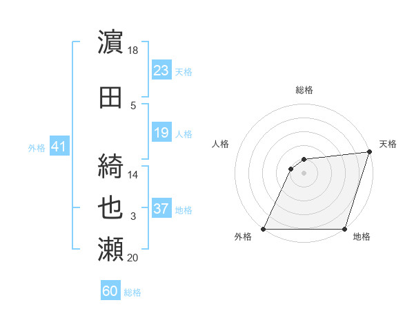 濵田 綺也瀬さんを姓名の画数から五運を鑑定