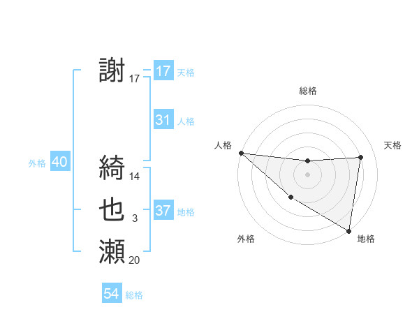 謝 綺也瀬さんの天格は17画の4点!