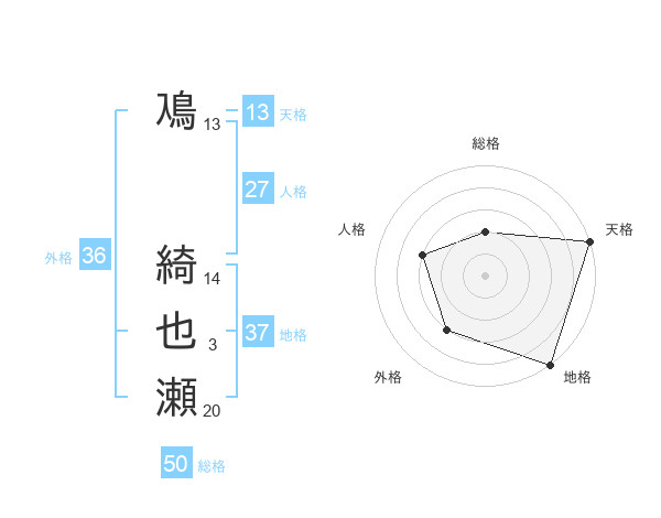 鳰 綺也瀬さんの総格は50画の2点!