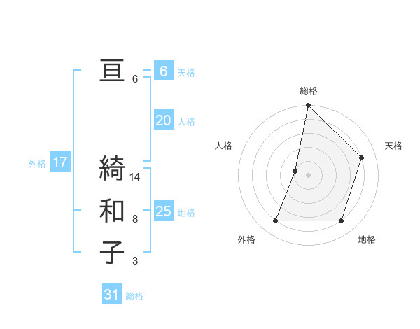 亘 綺和子さんの総格は31画の5点!
