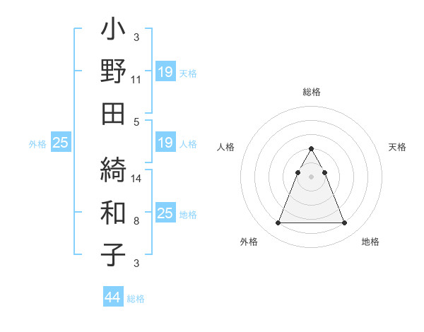 小野田 綺和子さんを姓名の画数から五運を鑑定