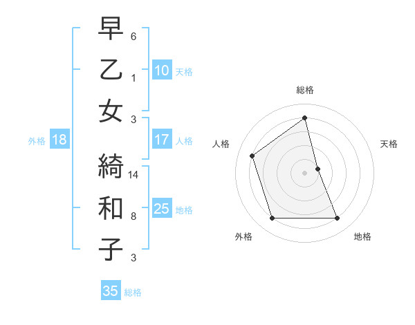 早乙女 綺和子さんの総格は35画の4点!