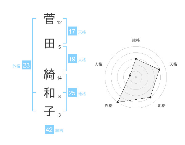 菅田 綺和子さんを姓名の画数から五運を鑑定