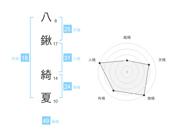 八鍬 綺夏さんの人格は31画の5点!