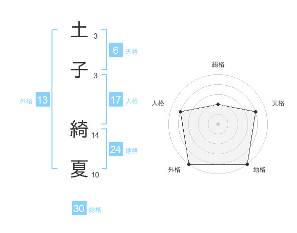 土子 綺夏さんの外格は13画の5点!