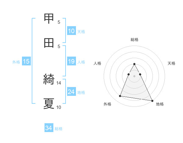 甲田 綺夏さんの天格は10画の1点!