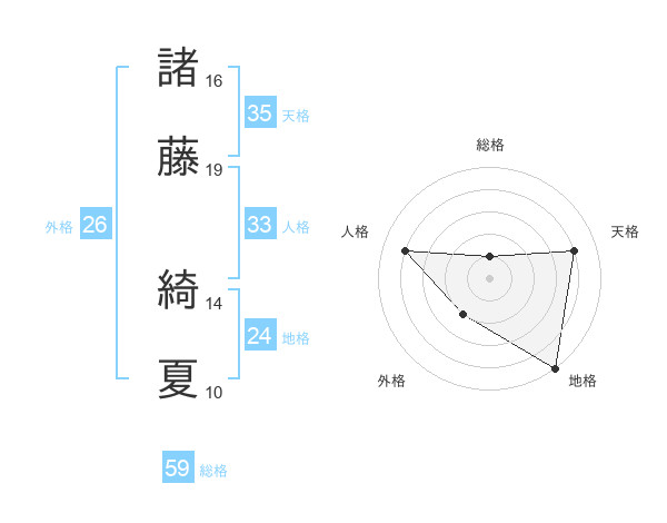 諸藤 綺夏さんを姓名の画数から五運を鑑定