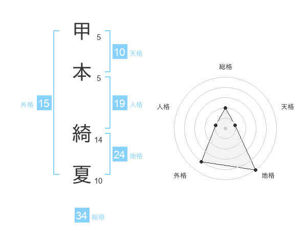 甲本 綺夏さんの総格は34画の2点!