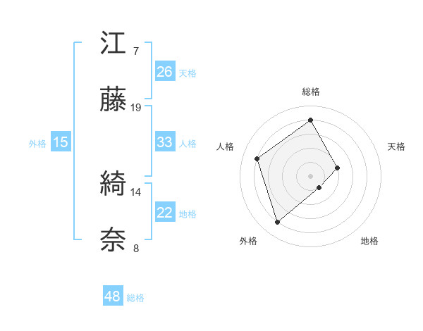 江藤 綺奈さんを姓名の画数から五運を鑑定