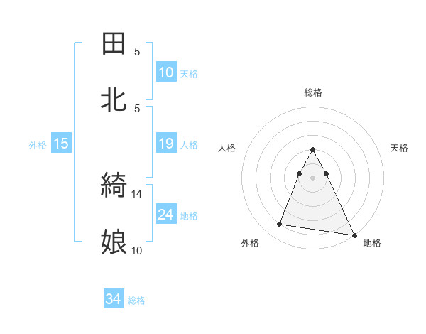田北 綺娘さんの総格は34画の2点!
