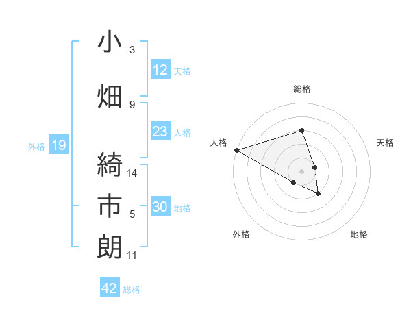 小畑 綺市朗さんの総格は42画の3点!