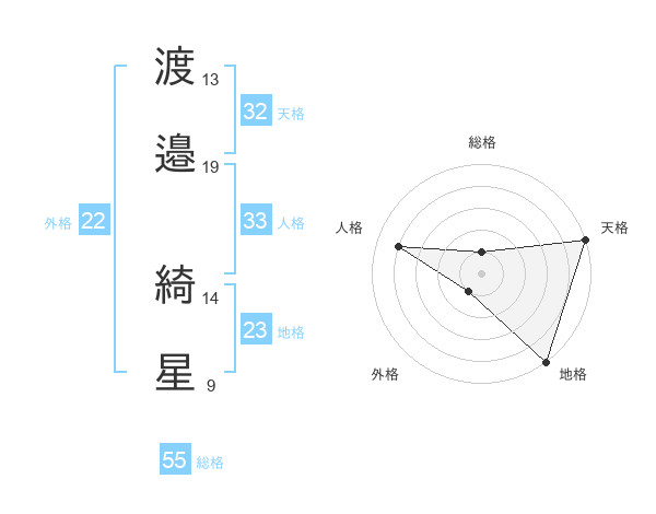 渡邉 綺星さんを姓名の画数から五運を鑑定