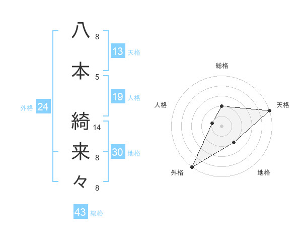 八本 綺来々さんの総格は43画の2点!