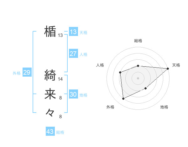 楯 綺来々さんを姓名の画数から五運を鑑定