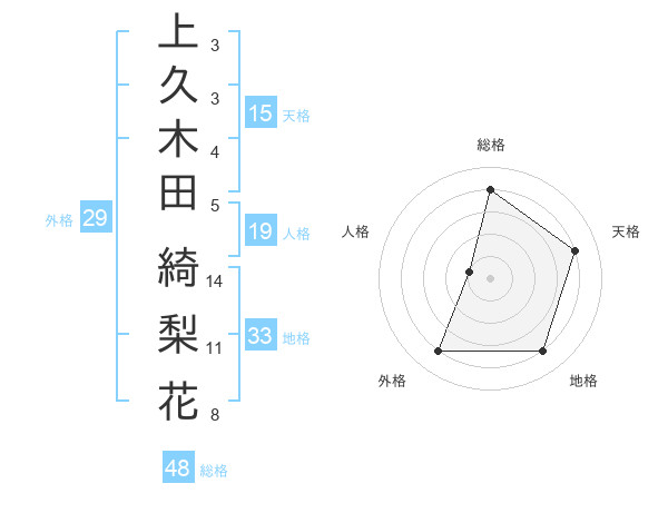 上久木田 綺梨花さんを姓名の画数から五運を鑑定