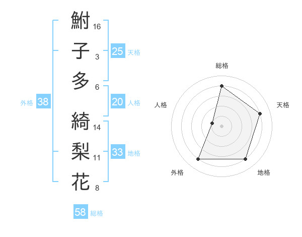 鮒子多 綺梨花さんの総格は58画の4点!