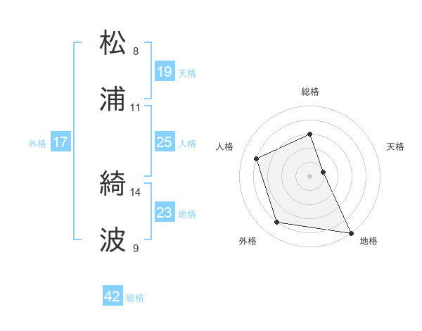 松浦 綺波さんを姓名の画数から五運を鑑定