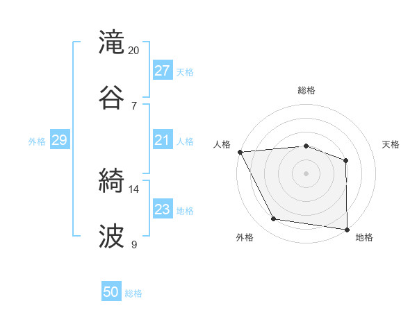 滝谷 綺波さんを姓名の画数から五運を鑑定