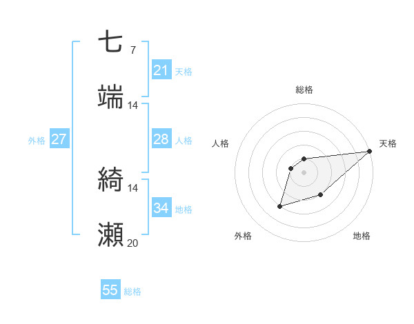 七端 綺瀬さんを姓名の画数から五運を鑑定