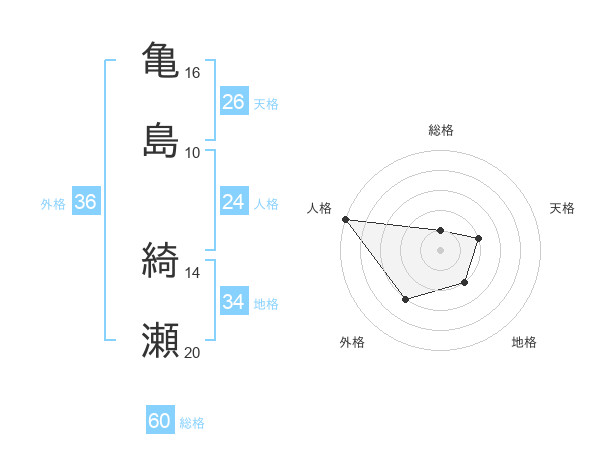 亀島 綺瀬さんを姓名の画数から五運を鑑定