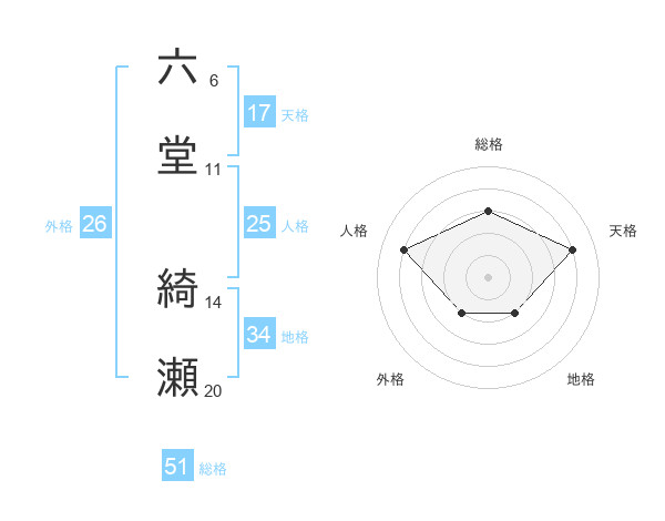 六堂 綺瀬さんの総格は51画の3点!