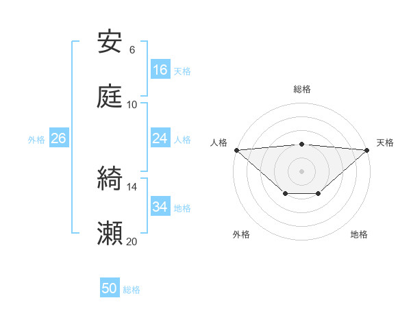 安庭 綺瀬さんの総格は50画の2点!