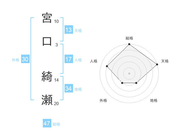 宮口 綺瀬さんの総格は47画の5点!