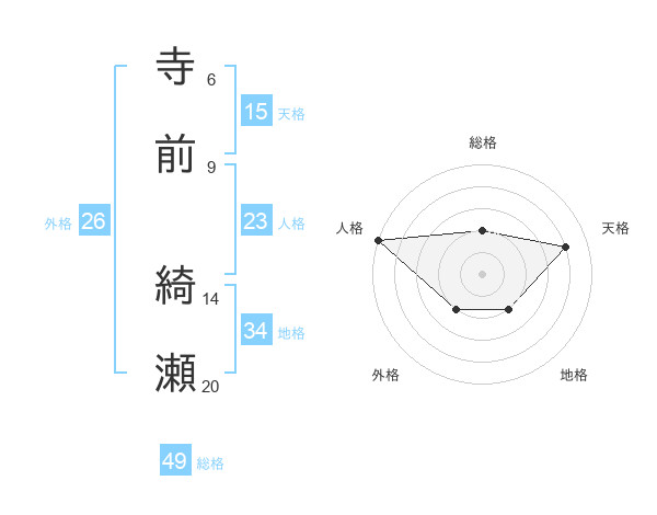 寺前 綺瀬さんの総格は49画の2点!