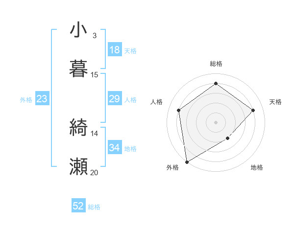 小暮 綺瀬さんの総格は52画の4点!