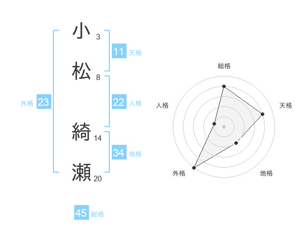 小松 綺瀬さんを姓名の画数から五運を鑑定