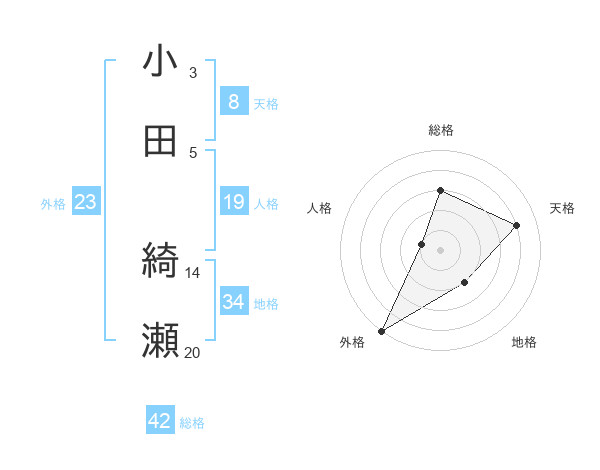 小田 綺瀬さんの総格は42画の3点!