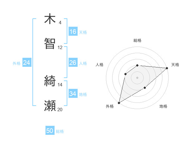 木智 綺瀬さんを姓名の画数から五運を鑑定