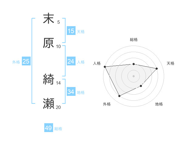 末原 綺瀬さんの総格は49画の2点!