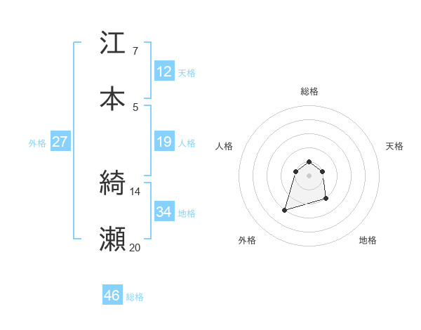 江本 綺瀬さんの総格は46画の1点!