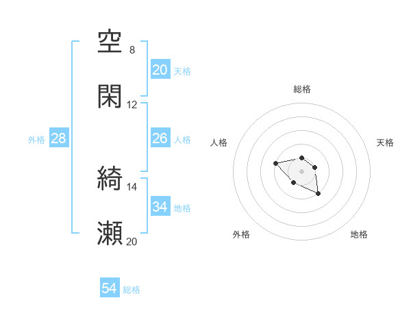 空閑 綺瀬さんを姓名の画数から五運を鑑定