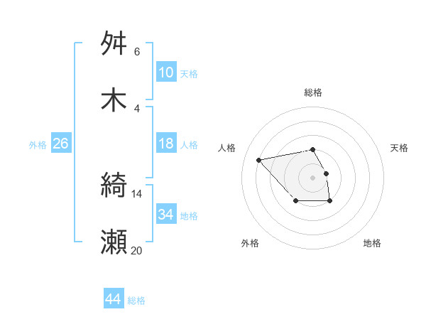 舛木 綺瀬さんを姓名の画数から五運を鑑定