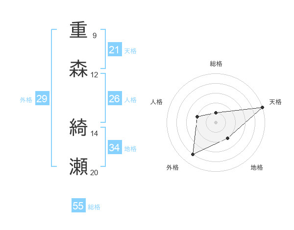 重森 綺瀬さんを姓名の画数から五運を鑑定