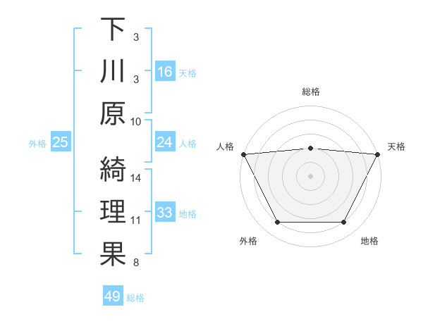 下川原 綺理果さんを姓名の画数から五運を鑑定
