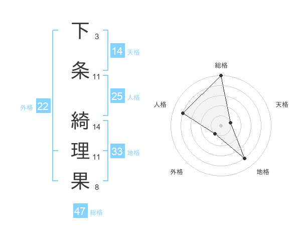 下条 綺理果さんの総格は47画の5点