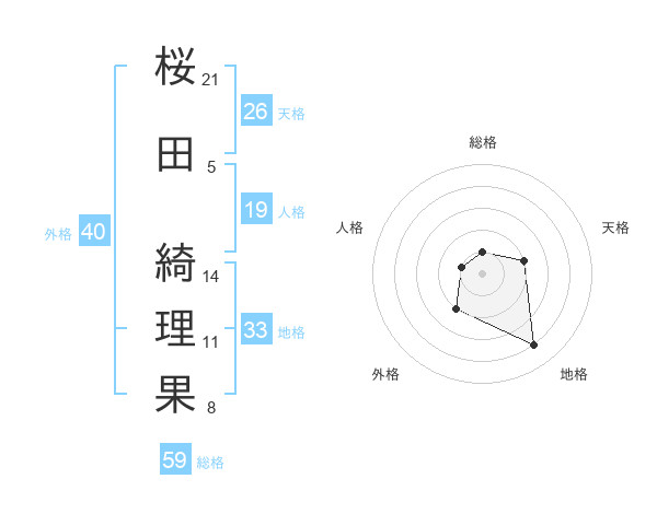 桜田 綺理果さんの総格は59画の1点