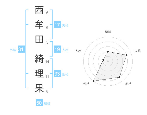 西牟田 綺理果さんを姓名の画数から五運を鑑定