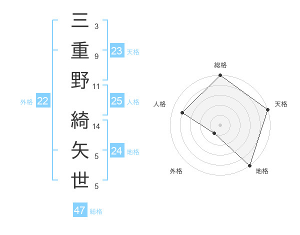 三重野 綺矢世さんを姓名の画数から五運を鑑定