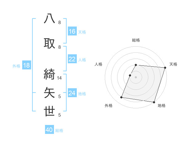八取 綺矢世さんを姓名の画数から五運を鑑定