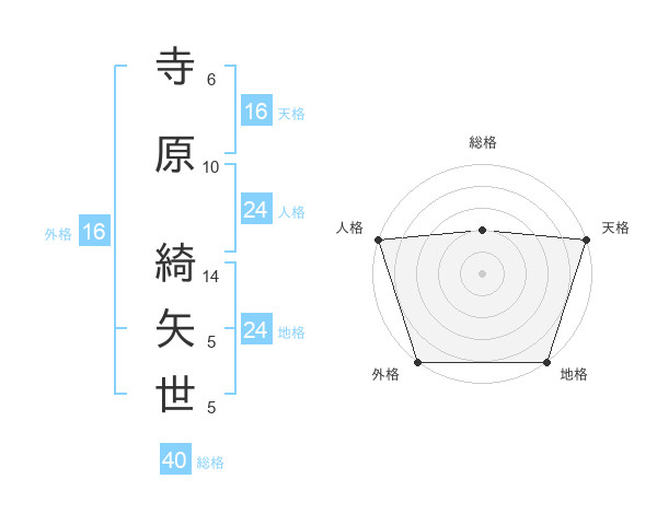寺原 綺矢世さんを姓名の画数から五運を鑑定