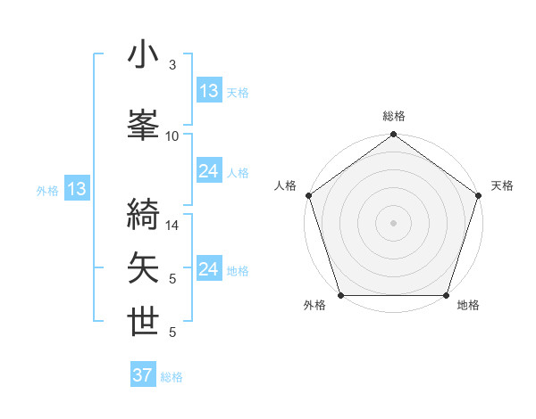 小峯 綺矢世さんの外格は13画の5点!