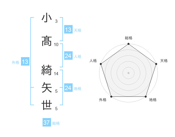 小髙 綺矢世さんを姓名の画数から五運を鑑定