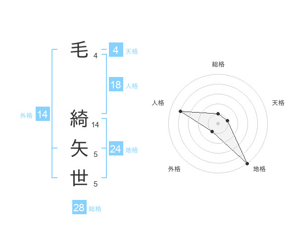 毛 綺矢世さんを姓名の画数から五運を鑑定