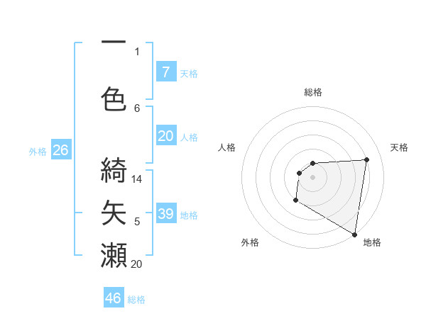 一色 綺矢瀬さんを姓名の画数から五運を鑑定