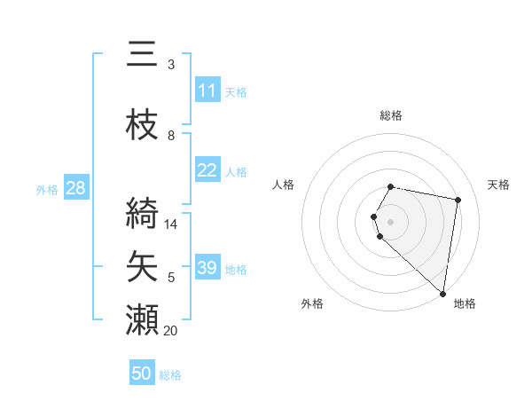 三枝 綺矢瀬さんを姓名の画数から五運を鑑定